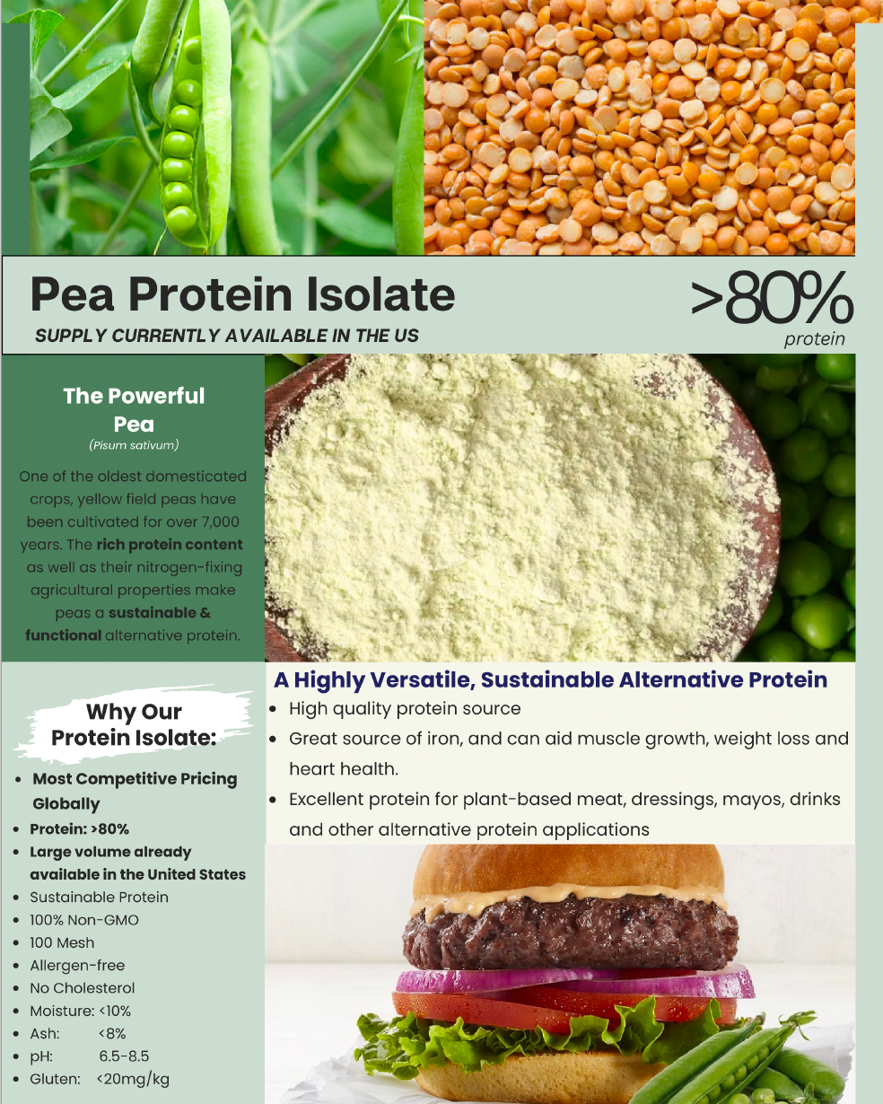 Pea Protein Isolate from Canada and China available in full truckload quantities (FCL).